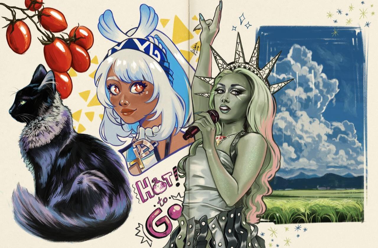 My main mediums for traditional art are gouaches and watercolors but I consider myself an explorer and a collector: I like to try and mix tools everytime I get the chance to.